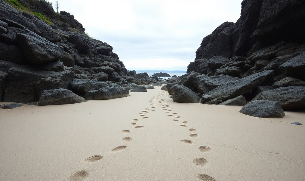 There were two sets of footprints side by side in the sand: my own footprints coming and going.