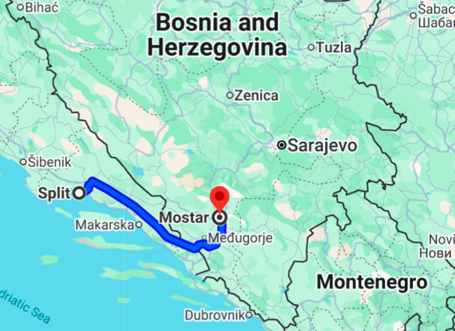 If you’re coming from Sarajevo (in Bosnia and Herzegovina), or Dubrovnik or Split (in Croatia), it’s an easy trip by bus ($10-$30 USD) or car. The border with Croatia is easily crossed. We rented a car in Split ($30/day).